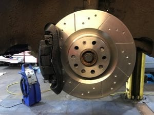 We can conduct all types of brake repairs and servicing, including brake upgrades, replacement discs, replacement pads and calipers as well as any other brake related work. We can supply and fit the best quality brake parts – the picture below shows a brake upgrade for a Seat Leon track day car – if you need similar brake upgrades or replacements, we can help.